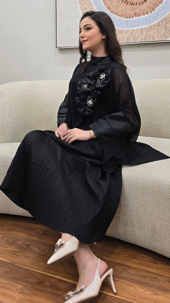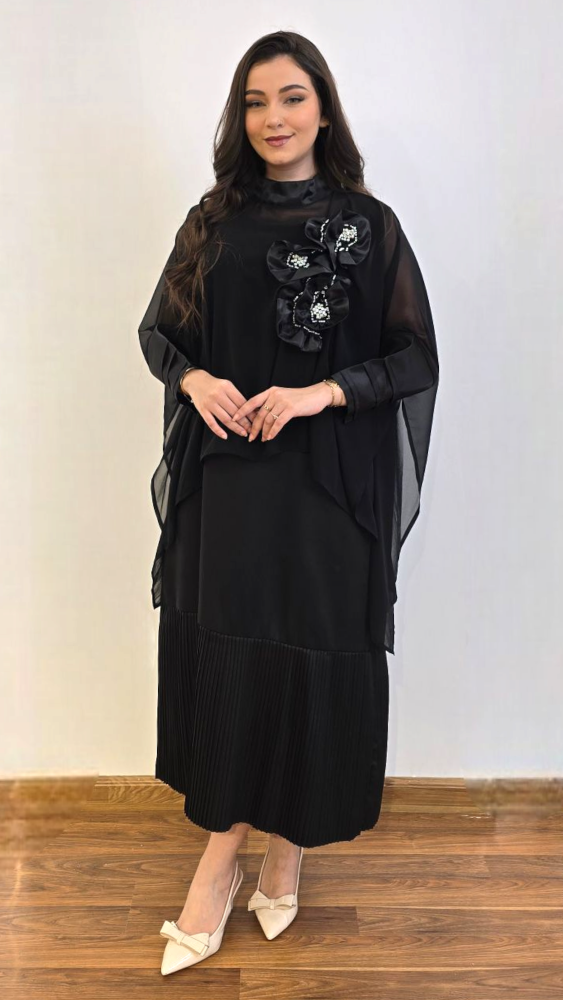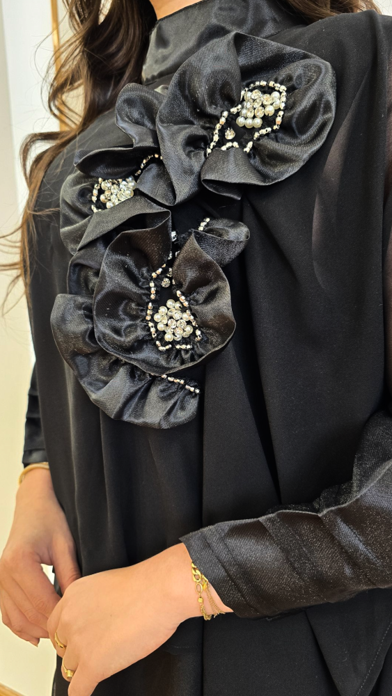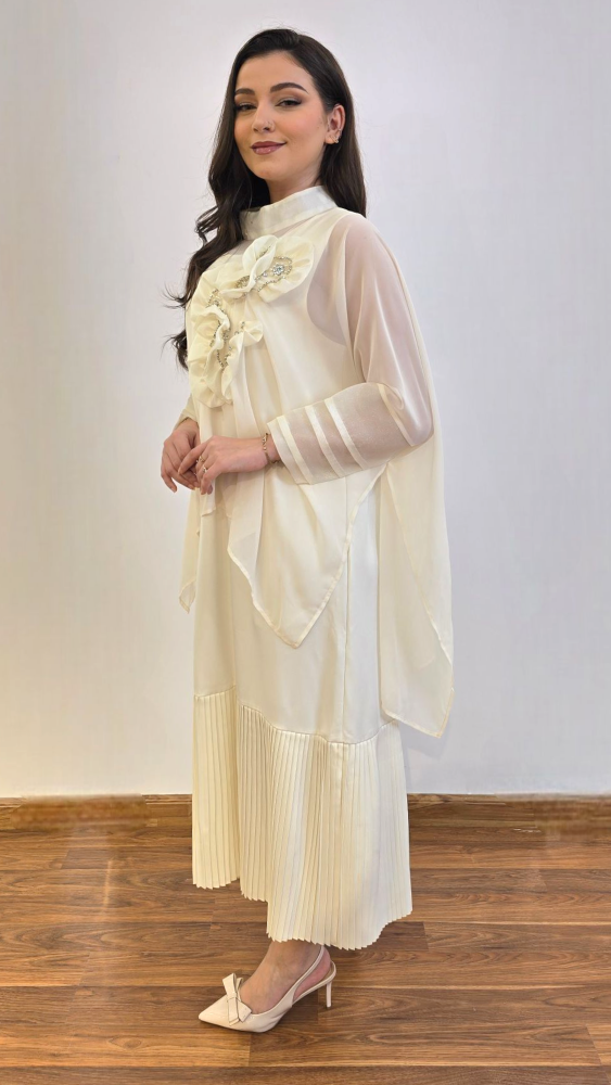 ✔️ تفاصيل فريدة مثل الأكمام الواسعة والزهور البارزة.
