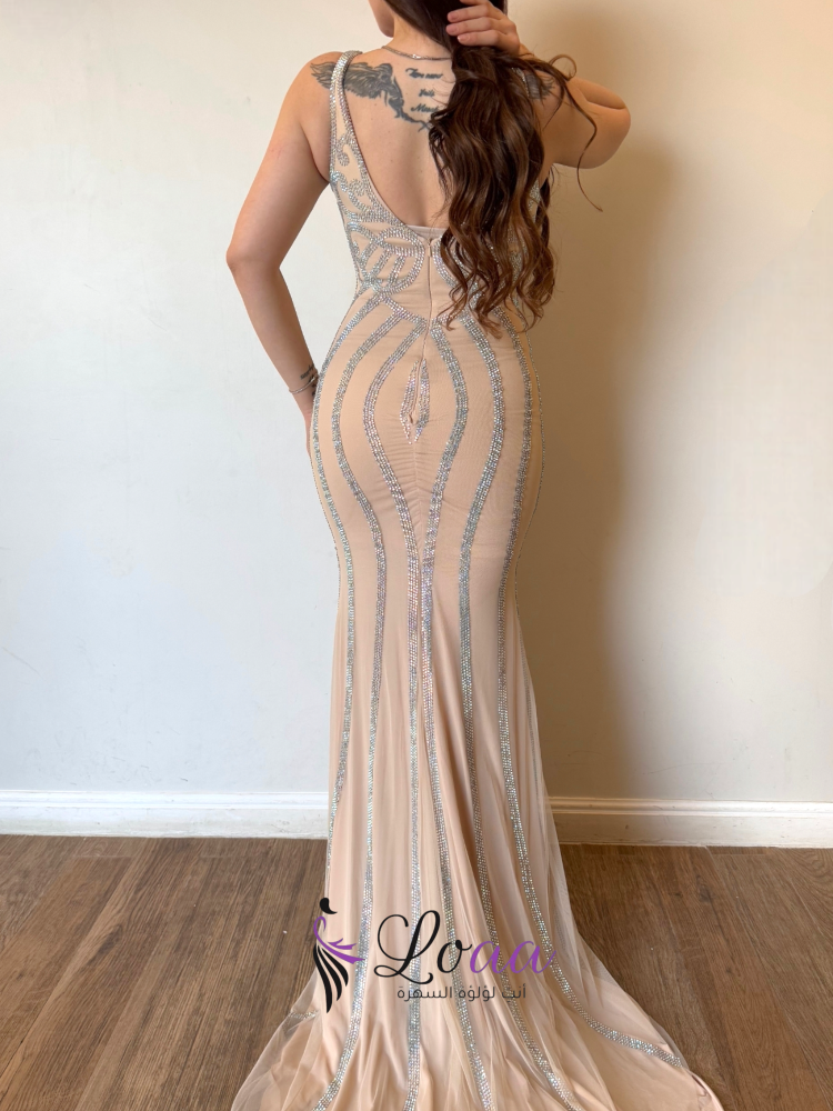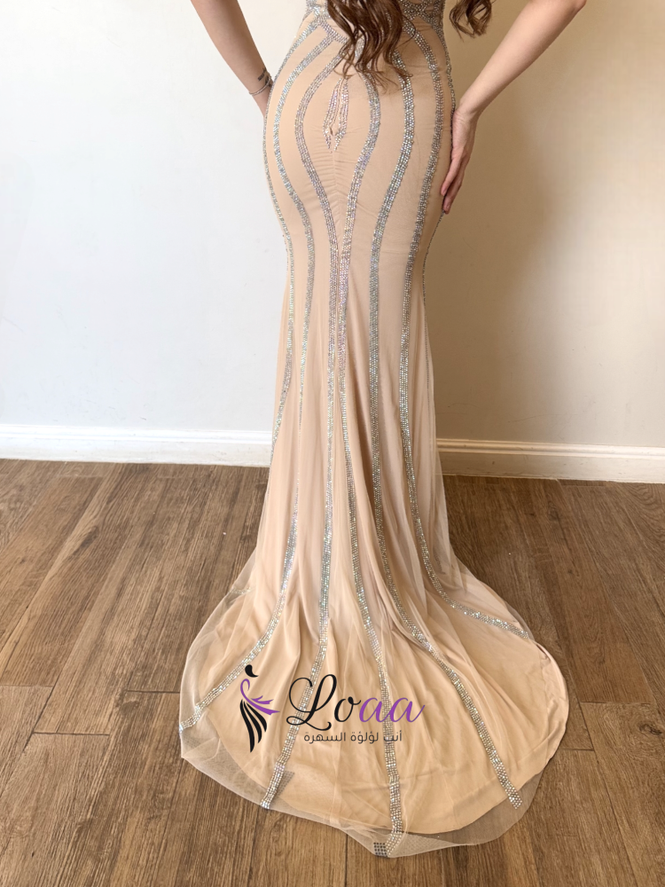 هذا الفستان الراقي باللون البيج مع تطريزات براقة يمثل إبداعاً في التصميم وأناقة لا مثيل لها. مناسب لحفلات الخطوبة والسهرات الفاخرة، بفضل مزيج التصميم الحديث والتفاصيل الدقيقة.