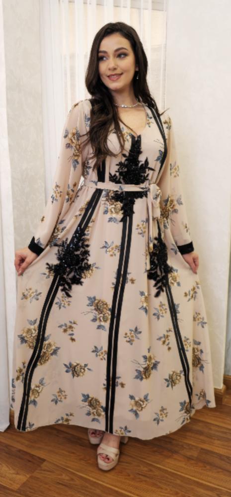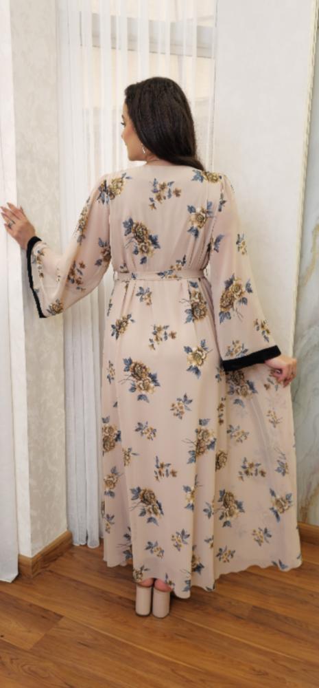 تميزي بإطلالة أنثوية راقية مع هذا الفستان الساحر، المصمم خصيصًا ليعكس الفخامة والرقي. يتميز الفستان بنقشة زهور ناعمة على خلفية بلون بيج أنيق، مع لمسات من الدانتيل الأسود المطرز بطريقة فنية تضيف لمسة فريدة من الأناقة. تصميمه المريح والفضفاض يمنحك حرية الحركة، بينما يبرز الحزام القابل للتعديل جمال الخصر ليمنحك قوامًا جذابًا ومتناسقًا.