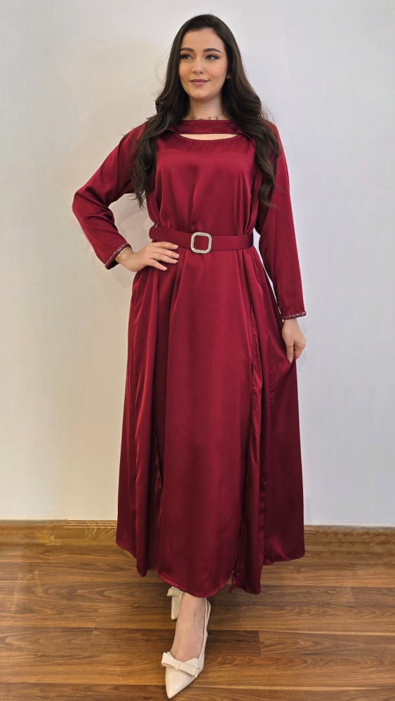 يأتي فستان الأنوثة المخملية بتصميم فخم وأنيق بلون عنابي غني يعكس القوة والجاذبية. يتميز بقصة واسعة تمنحك حرية الحركة مع خامة انسيابية تضفي لمسة ناعمة ومريحة.
